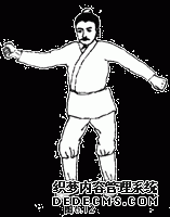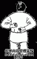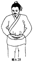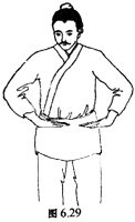 图6.1 两手按住大腿,上体向左右扭动二十一遍。(原文为两手捺髀左右捩身三七遍)。