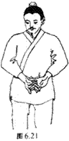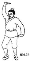 图6.3 两手抱住头项,向左右扭腰十四次。