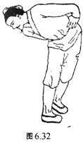 图6.2 两手按住大腿,向左右扭肩十四次。